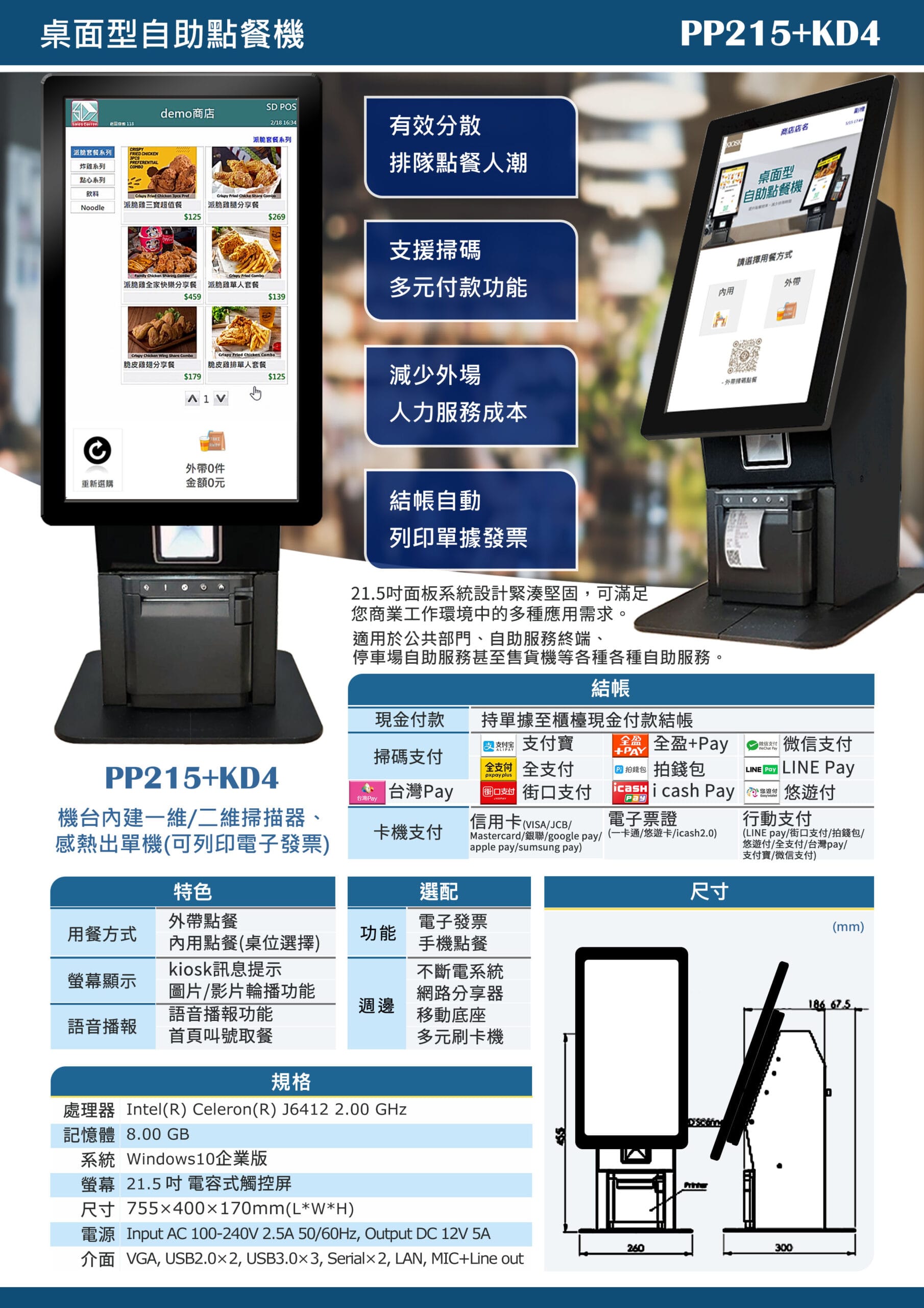 外帶點餐/ 內用點餐/ 自助收銀 | kiosk訊息提示 圖片或影片輪播功能 | 語音播報功能 首頁叫號取餐 |